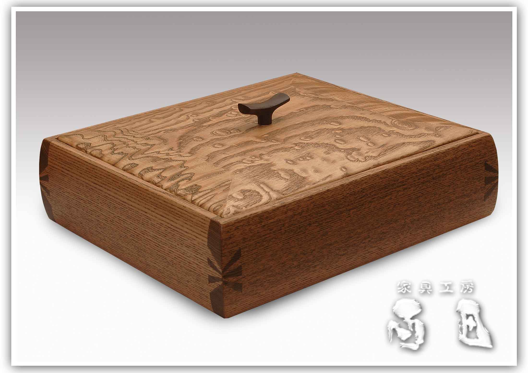 タモ材の貴重な玉杢を漆で仕上げた多目的箱です |